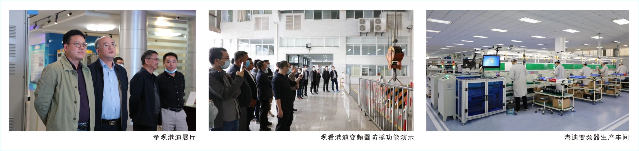 向愛國董事長、徐林業高級副總裁陪同張道勝副總經理一行參觀了港迪展廳、生產車間,現場觀摩了港迪變頻器防搖功能及制動器失效保護功能演示。中鐵聯集的領導和專家認為國產品牌在備品備件、服務支持等方面更具優勢,對港迪變頻器、智能遠程控制系統等產品的先進技術、穩定質量和快捷服務表示贊賞,同時希望港迪公司在技術培訓等方面給予更大支持。